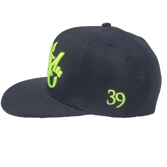 THE 3D BLACK AND FLUORESCENT GREEN TAG LOGO SNAPBACK BASEBALL HAT