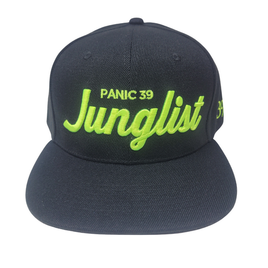 THE BLACK WITH BRIGHT GREEN PANIC 39 JUNGLIST SNAPBACK BASEBALL HAT