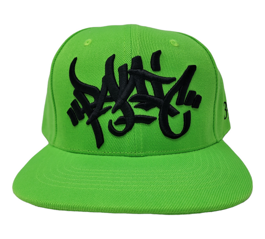 THE 3D BLACK AND FLUORESCENT GREEN TAG LOGO SNAPBACK BASEBALL HAT