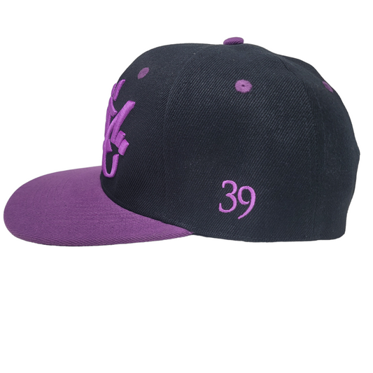 THE 3D BLACK & PURPLE TAG LOGO SNAPBACK BASEBALL HAT